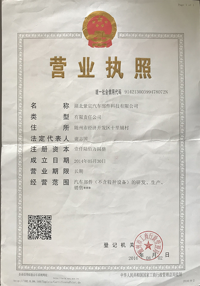 2002年,湖北紫宸汽車部件科技有限公司的前身“方元五金廠“注冊成立,廠址位于隨州市北郊蔣家崗村。主要生產(chǎn)各類沖壓件。專業(yè)配套湖北齊星汽車車身股份有限公司,東風(fēng)汽車公司。